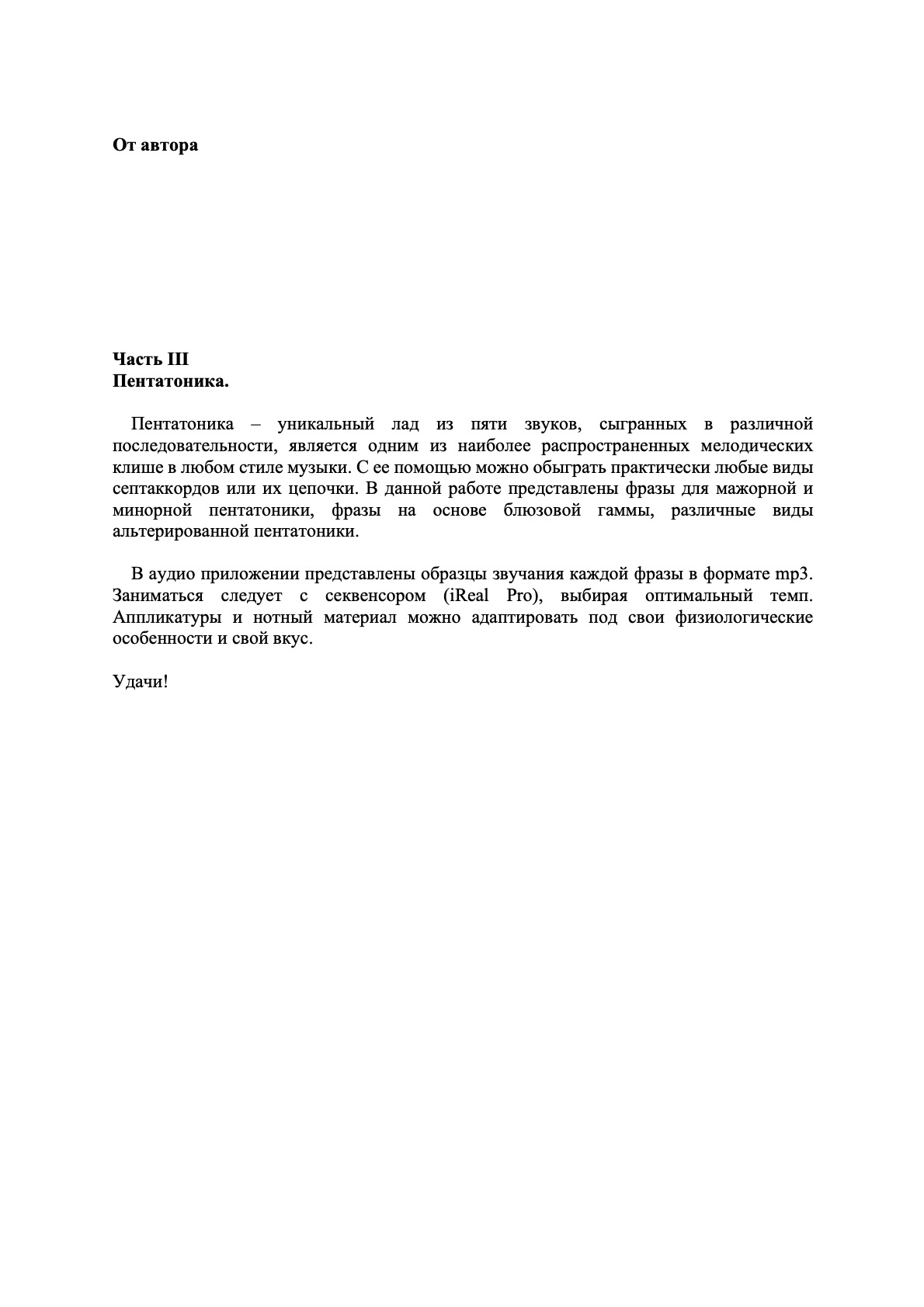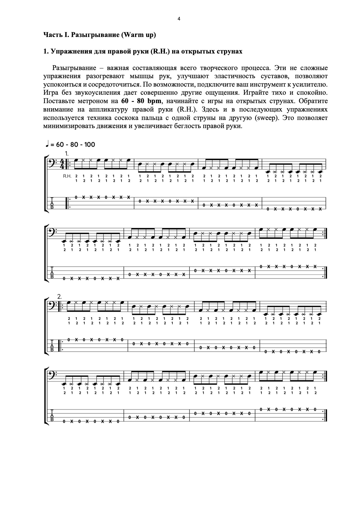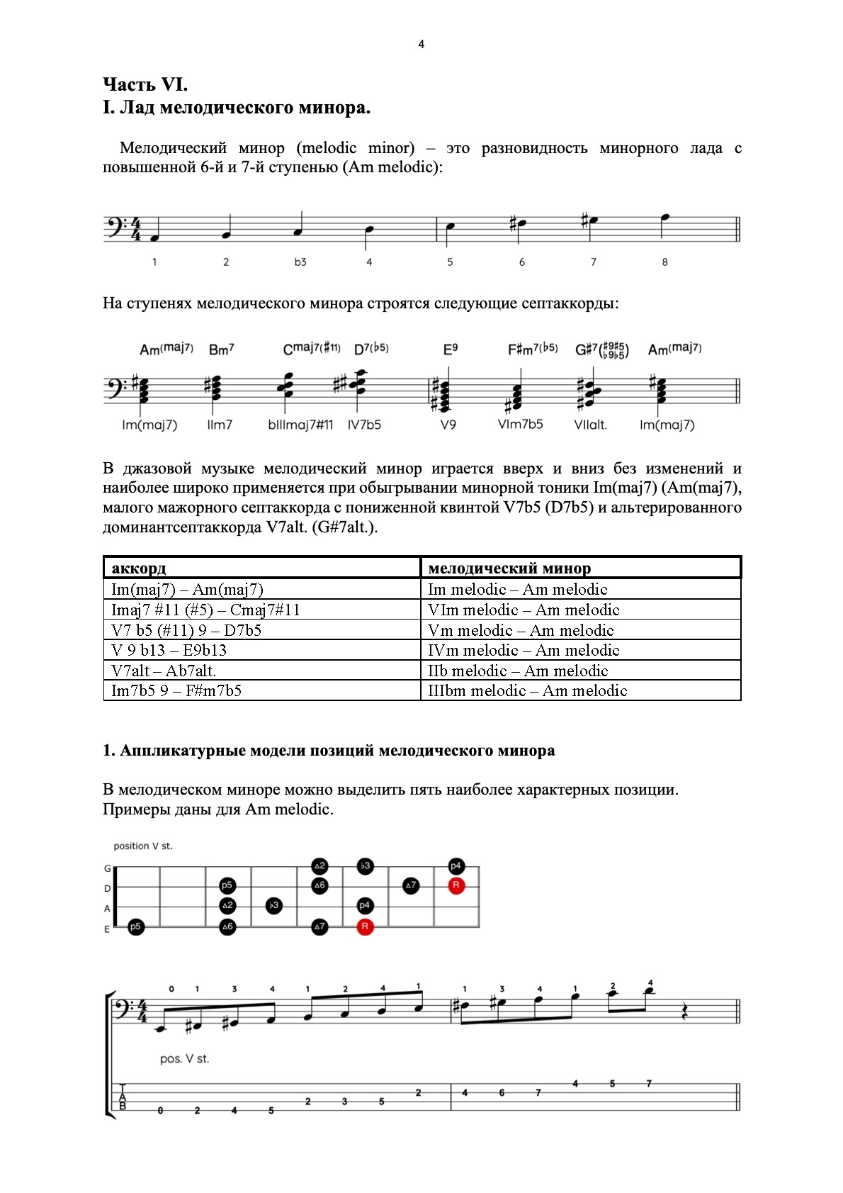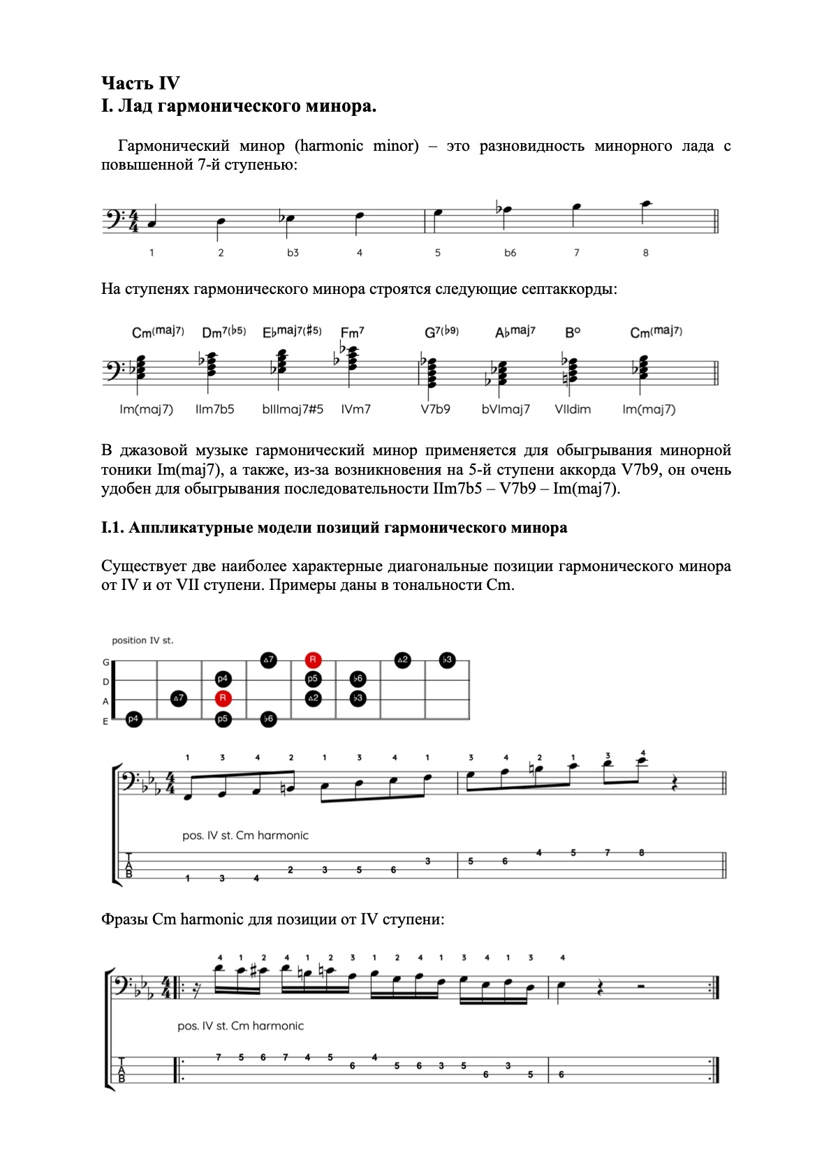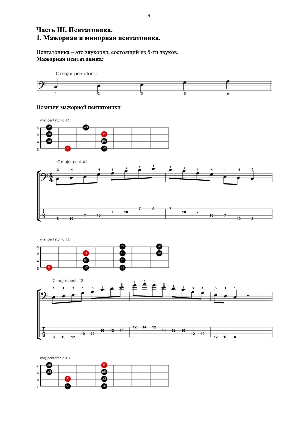 Перед Вами профессиональный набор учебных пособий для бас-гитары. Он представляет собой практический курс для последовательного изучения различных ладов и их аппликатурных моделей. В курс входят аппликатуры трезвучий, септаккордов, гамм, пентатоник, фразы для обыгрывания наиболее распространенных гармонических последовательностей: IIm7 – V7 – Imaj7, доминантсептаккордов с различными альтерациями (V7, V7b5, V7alt.), большого мажорного септаккорда (Imaj7, Imaj7#11), малого минорного септаккорда (IIm7, IIm9, IIm11). Упражнения предназначены для повышения беглости, изучения грифа, помогут свободно ориентироваться в любой тональности и более широко использовать проходящие звуки.